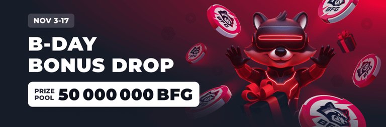 Crypto is overflowing our massive Furyverse. Thus, we are going to hold the B-Day Bonus Drop! All active and loyal users can share the huge 50 000 000 BFG prize pool in honor of our 6th Anniversary. May your leisure time be not only exciting, but also profitable!